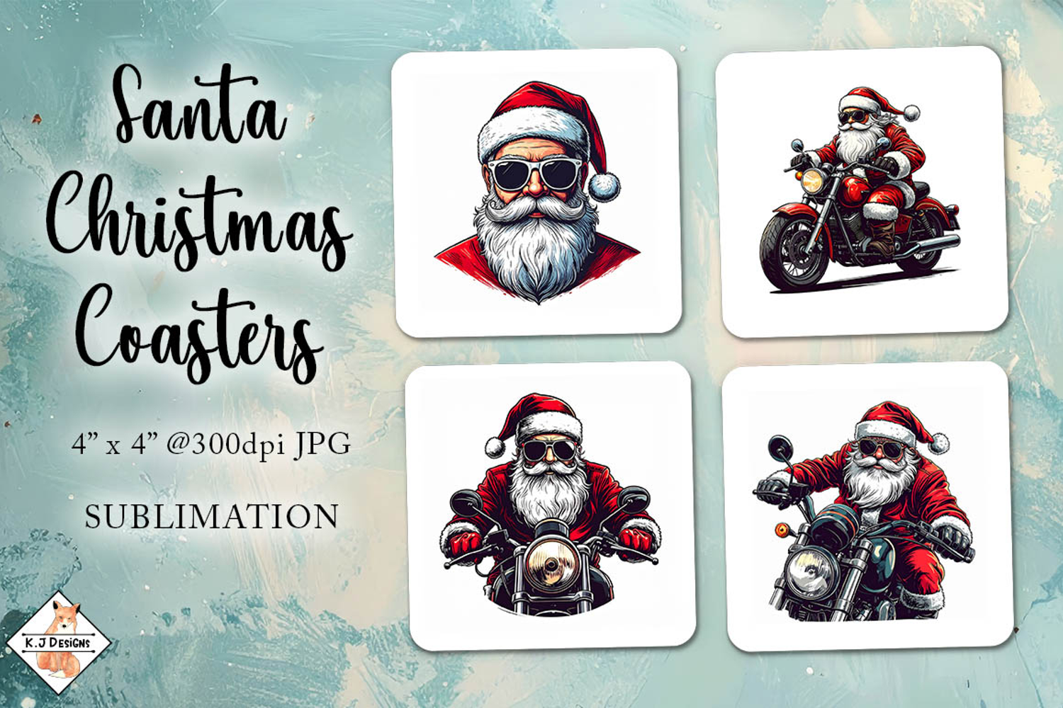 Santa on a Bike Christmas Coasters Sublimation example image 1