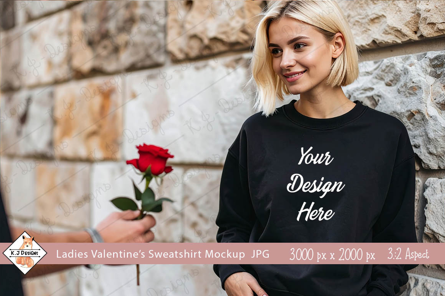 Ladies Valentine's Black Sweatshirt mockup jpg example image 1