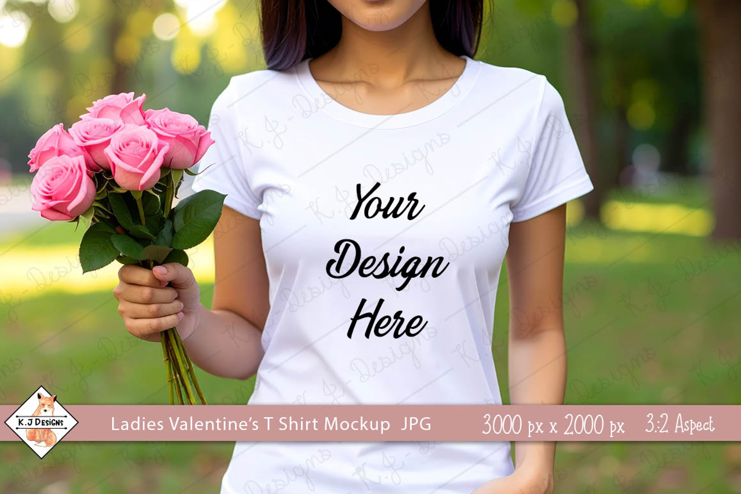 Mockup Mock Up Pink Roses Valentine's T Shirt Mockup Female Mockup White T Shirt Ladies Valentine's White T Shirt Mockup Jpg
