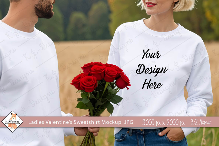 Ladies Valentine's White Sweatshirt mockup jpg example image 1