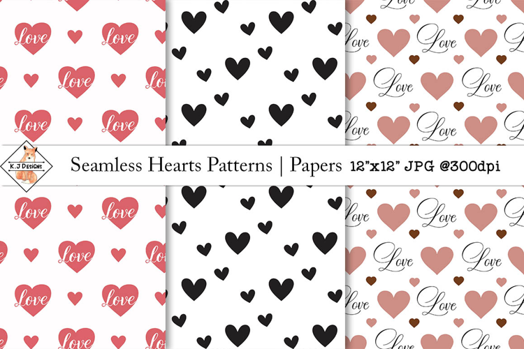 Love Hearts Patterns Digital Papers Scrapbook Papers Papers Background Papers Hearts Papers Valentine's Papers Seamless Heart Patterns Papers