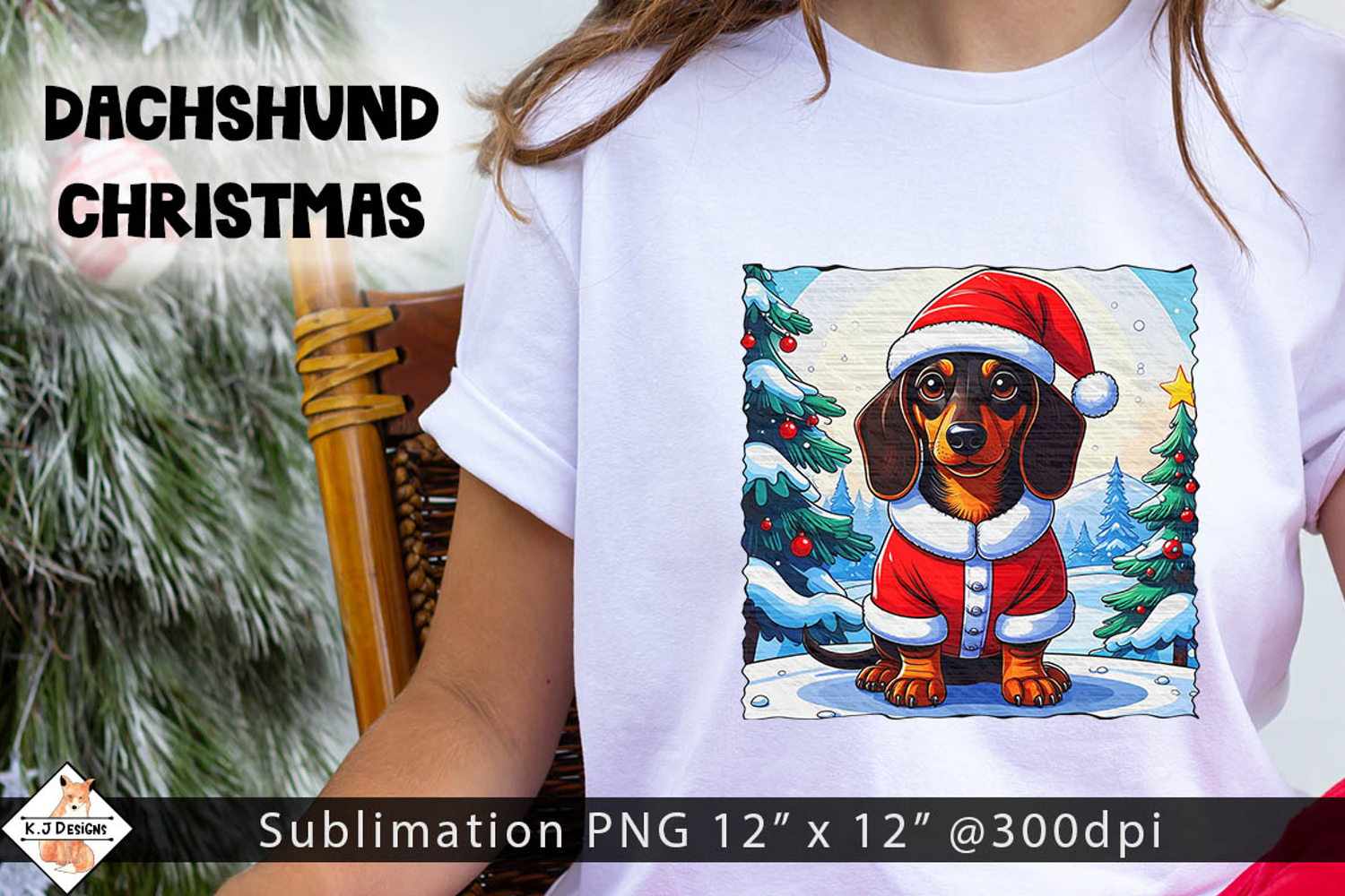 Dachshund Christmas Sublimation Design