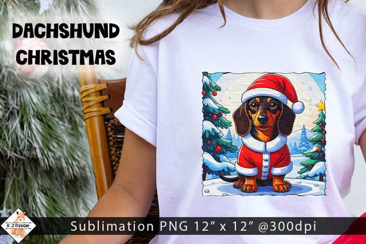 Dachshund Christmas Sublimation Design example image 1