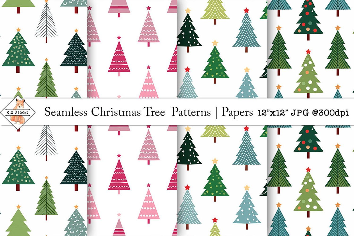 Seamless Pattern Digital Papers Scrapbook Papers Papers Christmas Papers Christmas Trees Seamless Christmas Tree Pattern Digital Papers