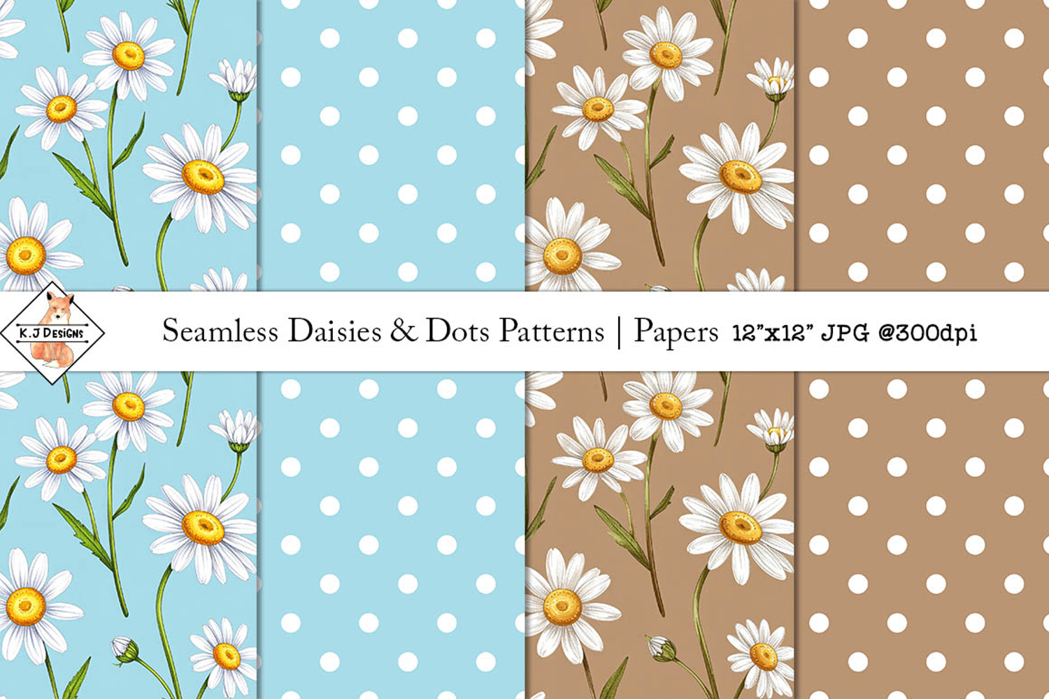 Seamless Daisies & Polka Dot Patterns | Digital Papers