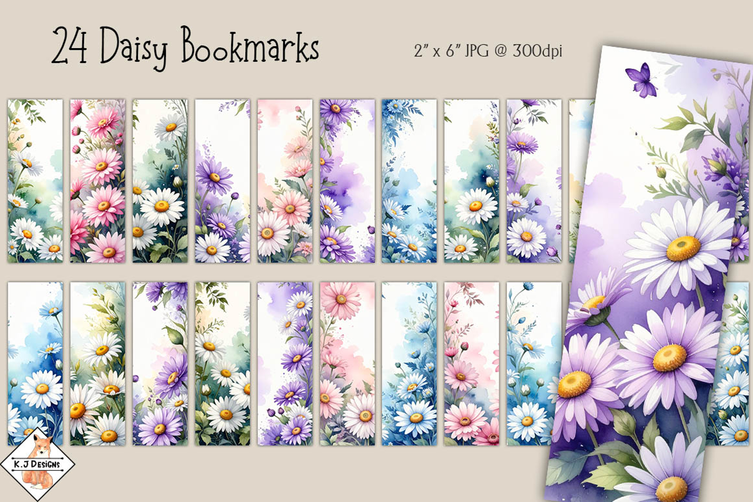 24 Beautiful daisy bookmark designs, easily add your own sentiment or printout as they are.