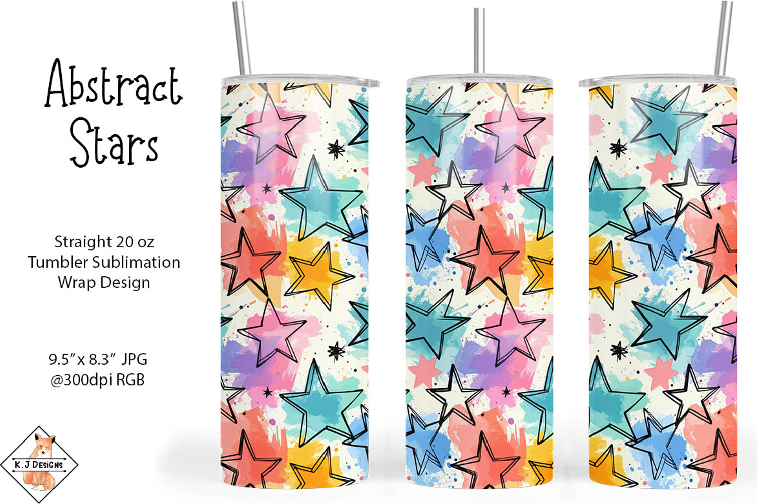 Abstract stars and pastel colors design for tumbler sublimation printing.