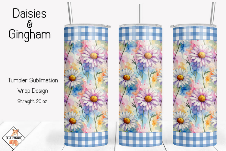 Tumbler Wrap Tumbler Sublimation 20 Oz Tumbler Skinny Tumbler Wrap Straight Tumbler Designs Flower Tumbler Wrap Daisy Designs Daisies & Gingham Sublimation Tumbler Wrap Design