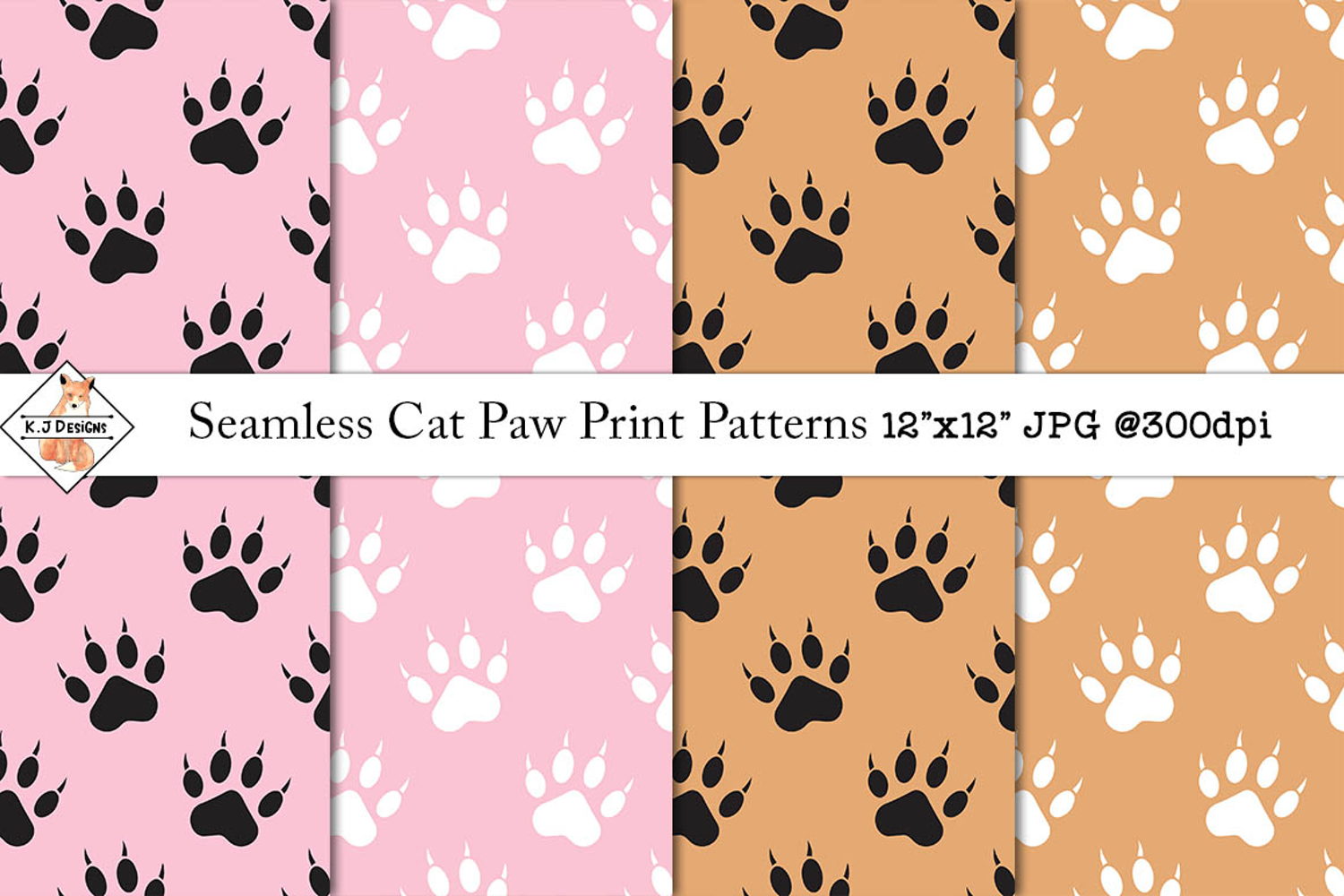 Seamless Cat Paw Print Patterns | Digital Papers example image 1