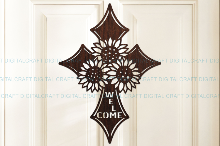 Digital Download Welcome Sign Svg Door Sign Svg Laser Cut Template Sunflower Cross Svg