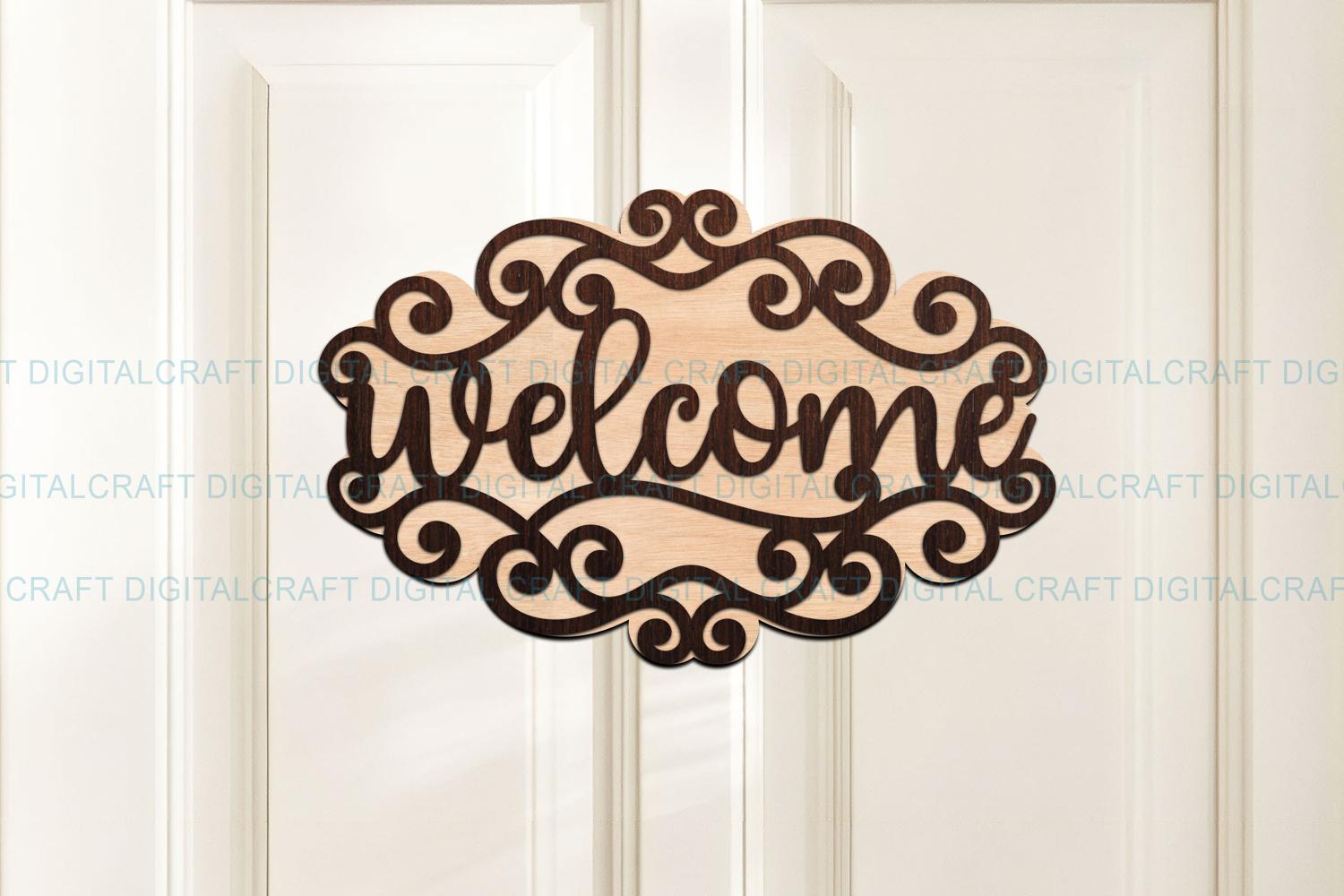 Digital Download Wall Art Door Hanger Laser Cut Template Swirls Welcome Sign Svg