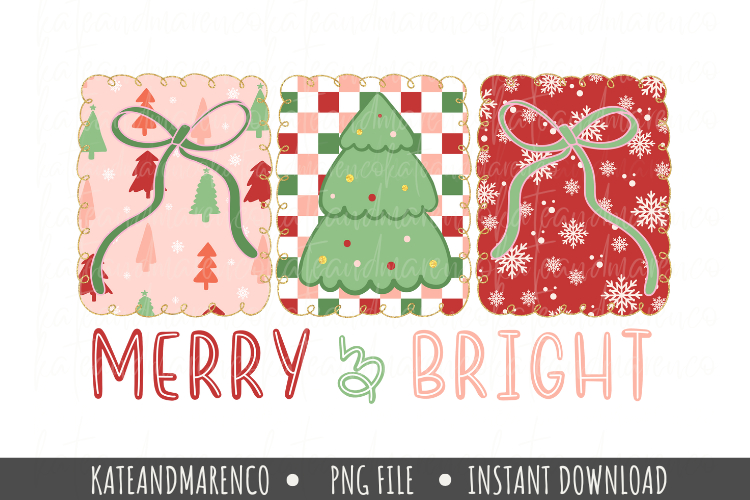 Merry And Bright PNG | Preppy Pink Christmas Sublimation