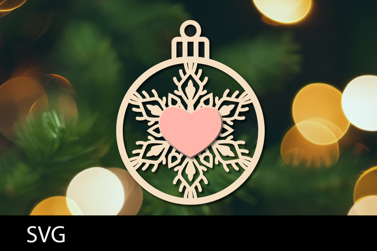 Christmas Ornaments SVG, heart snowflake ornament svg.