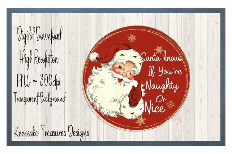 Santa knows if you're naughty or nice will make a beautiful holiday wreath. Great for hostess gifts, Christmas gifts and new home housewarming gift. This sublimation design is a digital download. Comes with high quality 300 dpi transparent PNG also a JPEG with background. Ready to print and press.