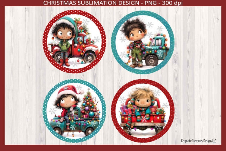 Quirky Christmas Boy, Truck Ornaments, Sublimation Png example image 1