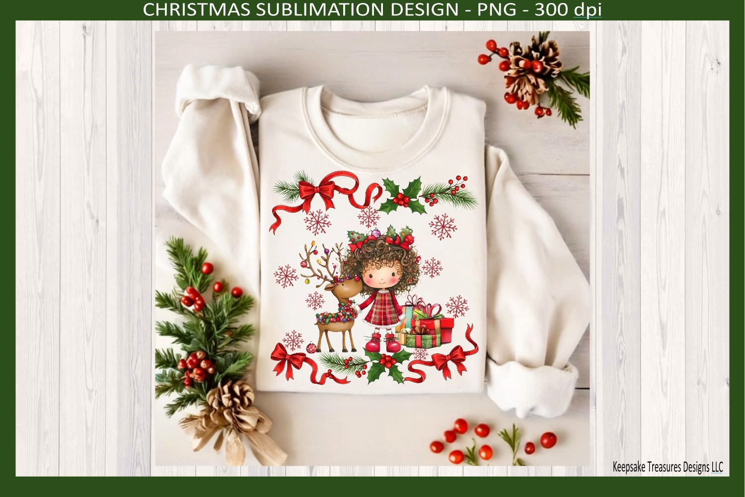 Whimsical Christmas Little Girl, Sublimation Png Design example image 1