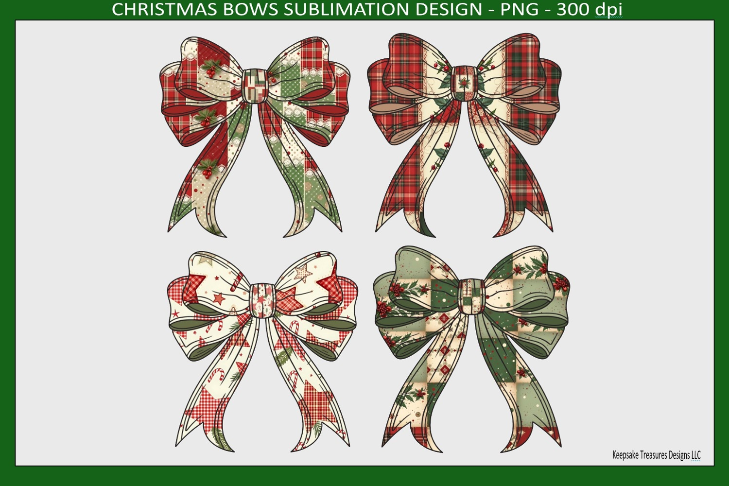 Christmas Bows Plaid Patchwork Sublimation Png Design example image 1