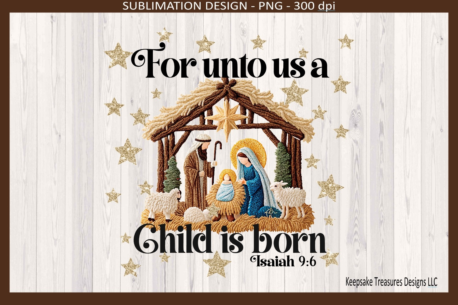 For Unto Us A Child Is Born Sublimation Png Design example image 1