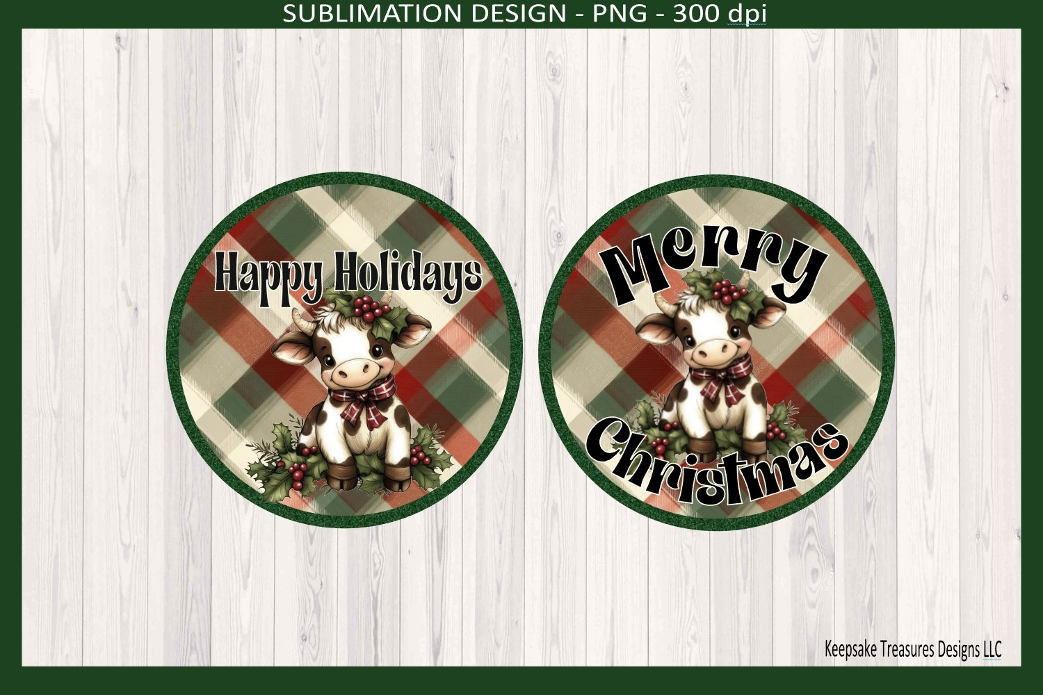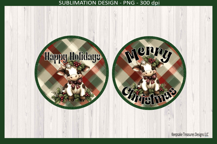 Merry Christmas Highland Cow Sublimation Ornament Template example image 1