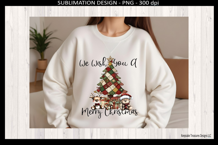 We Wish You A Merry Christmas Patchwork Tree Sublimation Png example image 1