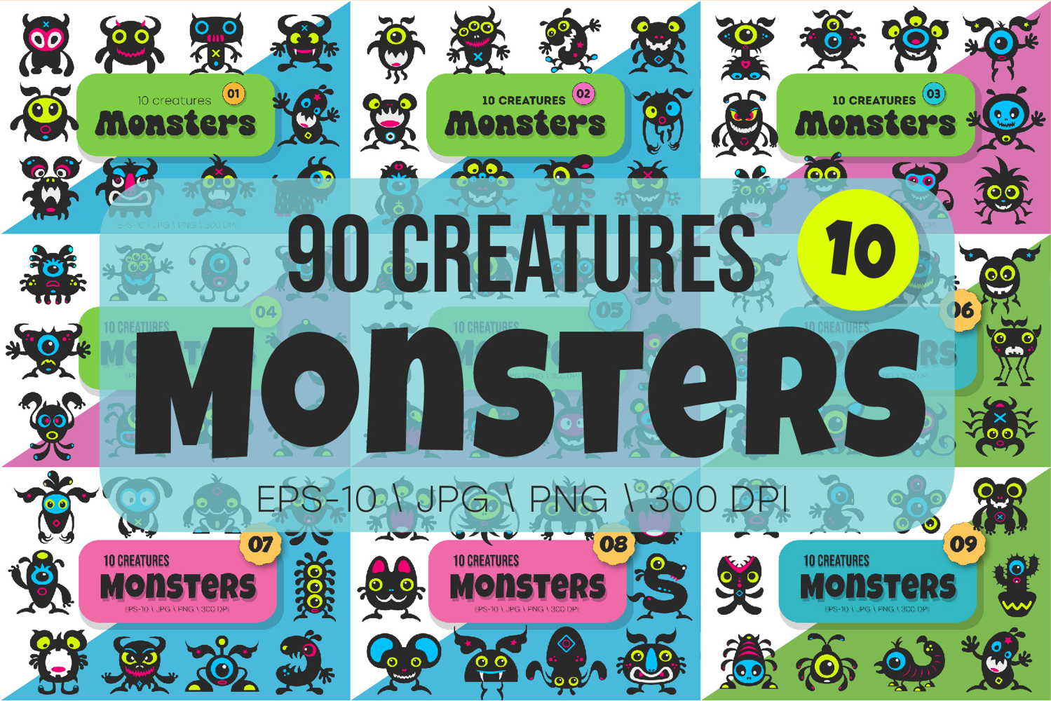 Big Bundle Whimsical Cartoon Monsters. This 10th set includes all monsters from the 9 sets.