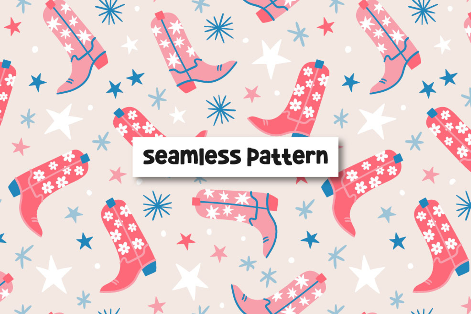 Digital Paper Seamless Pattern Fourth Of July Boho Pattern 4th Of July Pattern Cowboy Pattern Cowgirl Pattern Cowboy Boots Pattern Cowgirl Bots Pattern Fourth Of July Pattern