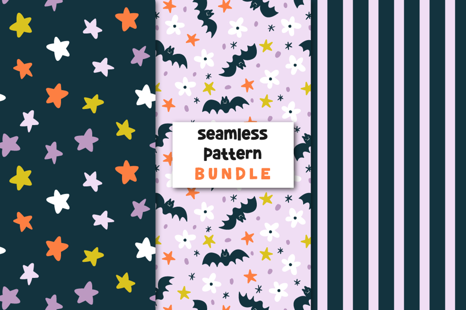 Scrapbook Seamless Pattern Halloween Digital Paper Pattern Bundle Stars Pattern Halloween Pattern Stripes Background Bat Pattern Hallowen Background Bats Background