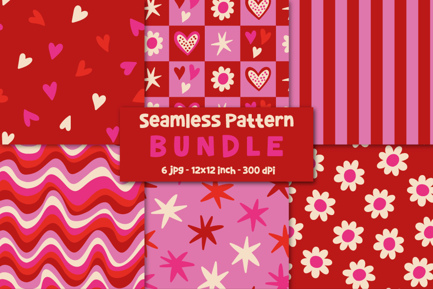 Valentines Digital Papers Love Patterns Hearts Background example image 1
