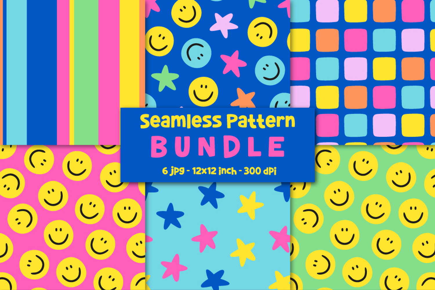 Seamless Pattern Happy Face Colorful Backgrounds Colorful Pattern Summer Pattern Summer Digital Papers Pattern Bundle Background Bundle Smile Pattern Smile Background