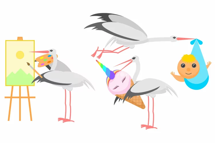This pack contains: 3 Set Collection Flat Animal Different Storks Concept Vector Design (SVG, JPG, AI, EPS)