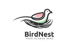 Logo Line Family Animal Design Nature Bird Nest Birdhouse Nestling