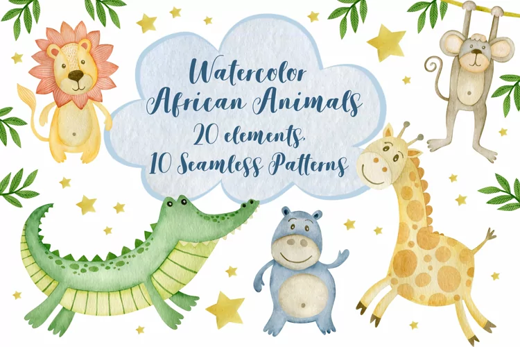 Similar Design Products to Watercolor African Animals Clipart. Seamless Patterns.