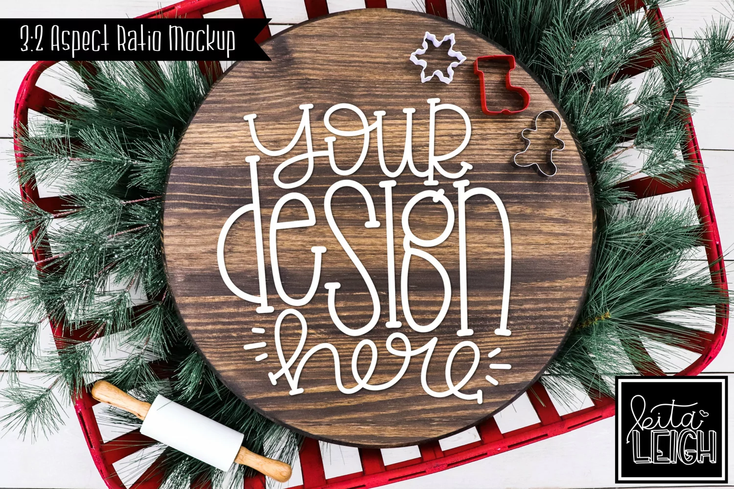 Wood Round Christmas Mockup with Cookies| Stylized Photo example image 1