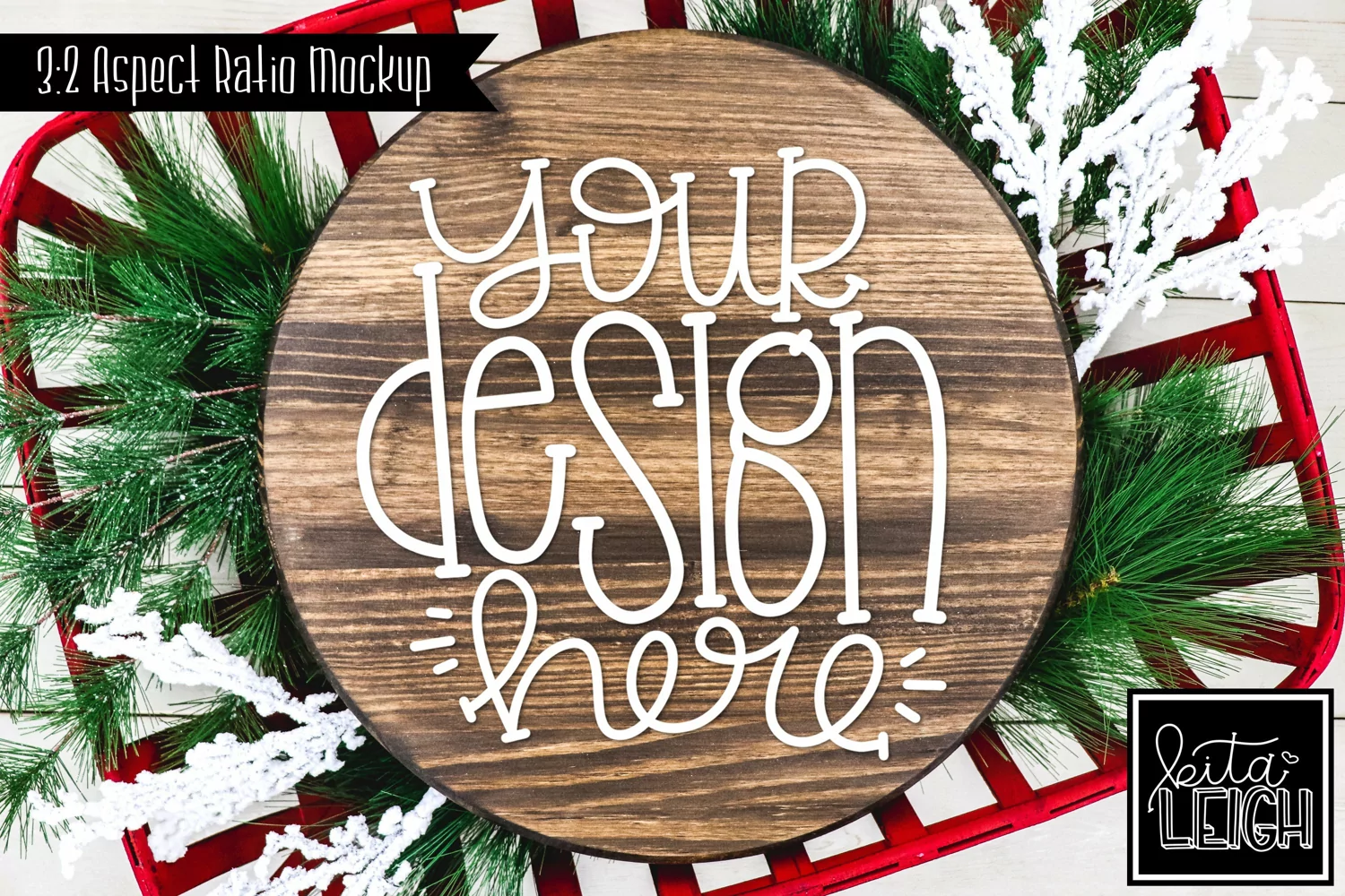 Wood Round Christmas Mockup with Snow | Stylized Photo