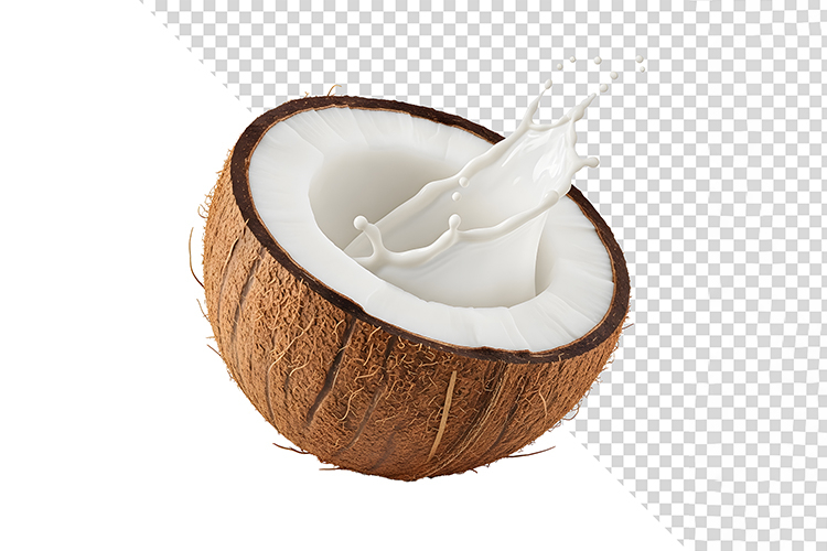 Fresh Half Coconut with Milk Splash Isolated on Transparent example image 1