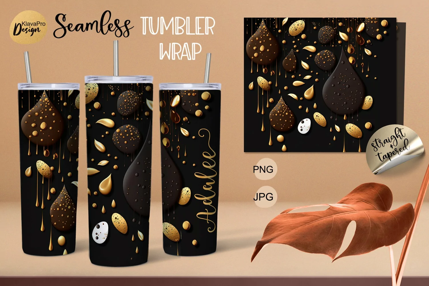 Seamless tumbler wrap with Coffee and chocolate and a place where you can place your text. Sublimation design for straight skinny tumbler and tapered skinny tumbler in two most popular sizes (20oz)