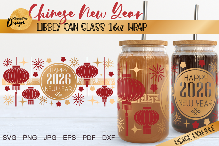 This bright and festive New Year wrap design is perfect for decorating your 16oz Libby style glass cans and creating a joyful holiday atmosphere. The artwork features elegant lanterns, sparkling fireworks, floral accents, and a central medallion with the greeting Happy 2026 New Year, adding a cheerful and celebratory touch to any drinkware project.