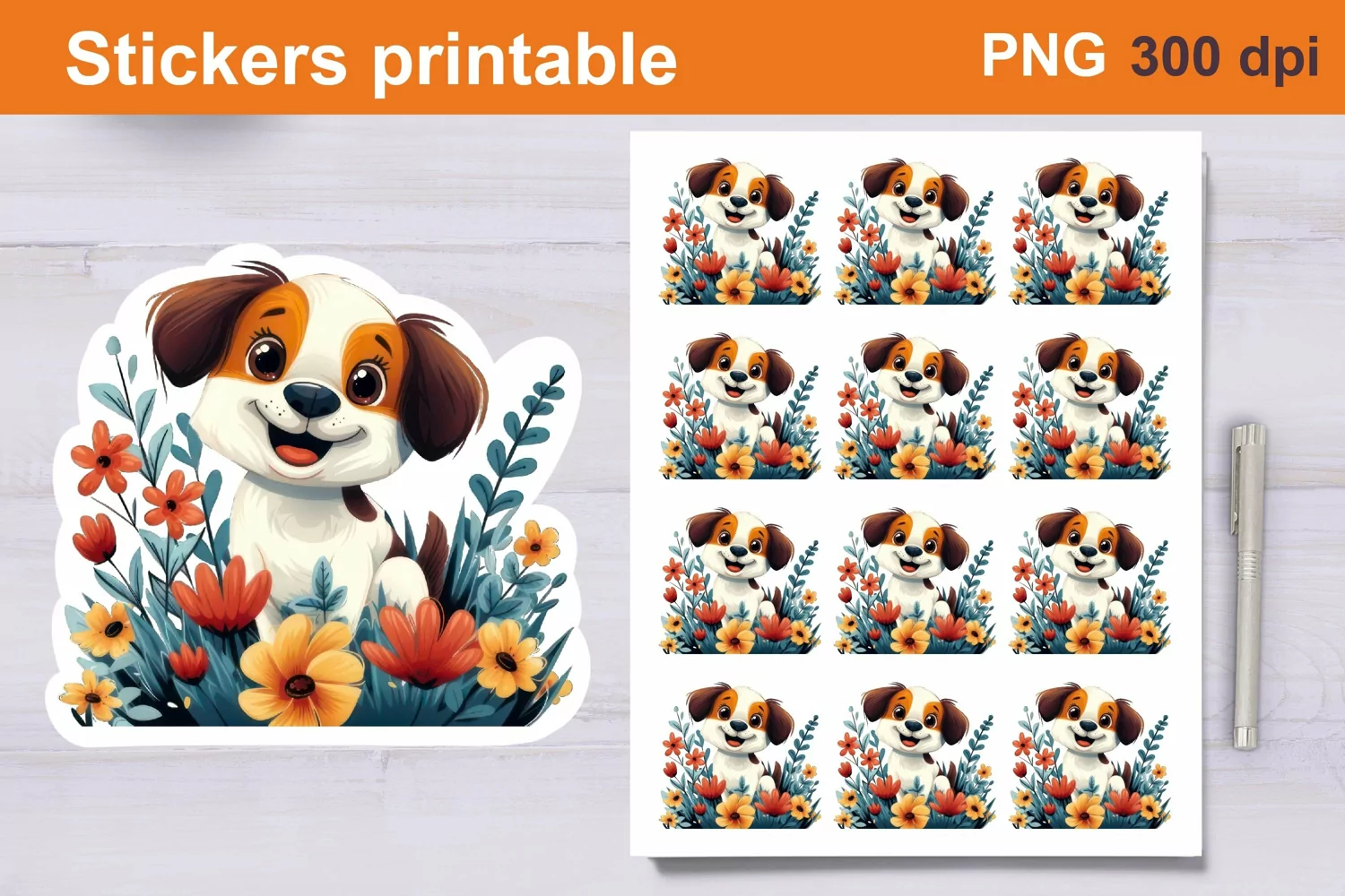 Sticker Cute Dog Dog With Flowers Dog Sticker Print And Cut Sticker Character Sticker Cute Dog Sticker Print And Cut Dog Dog Sticker Sheet Spring Dog Sticker