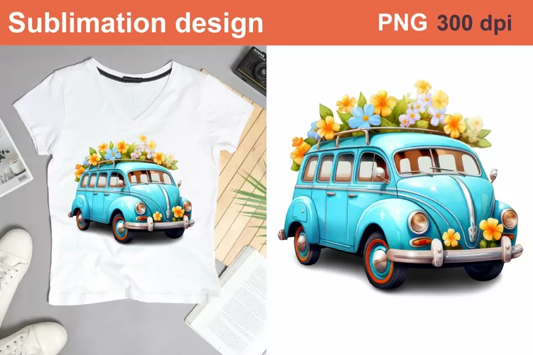 Sublimation PrintCar SublimationCar In Flowers Print And CutCar In FlowersCute Sublimation CarRetro Car With FlowersCar In Flowers ClipartRetro Car In Flowers SublimationTravel Car With FlowersTravel Car Sublimation