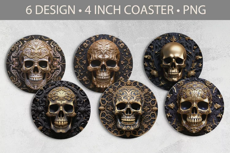Coaster Coaster Design Coaster Png Halloween Coaster Sublimation Halloween Round Coaster Scull Coaster Sublimation Coaster Sulimation Gothic Skull Coaster Coaster Skull Coaster Gold Skull