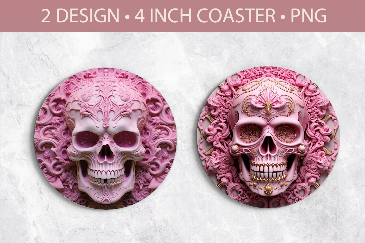 Halloween coaster, pink skull sublimation coaster png example image 1