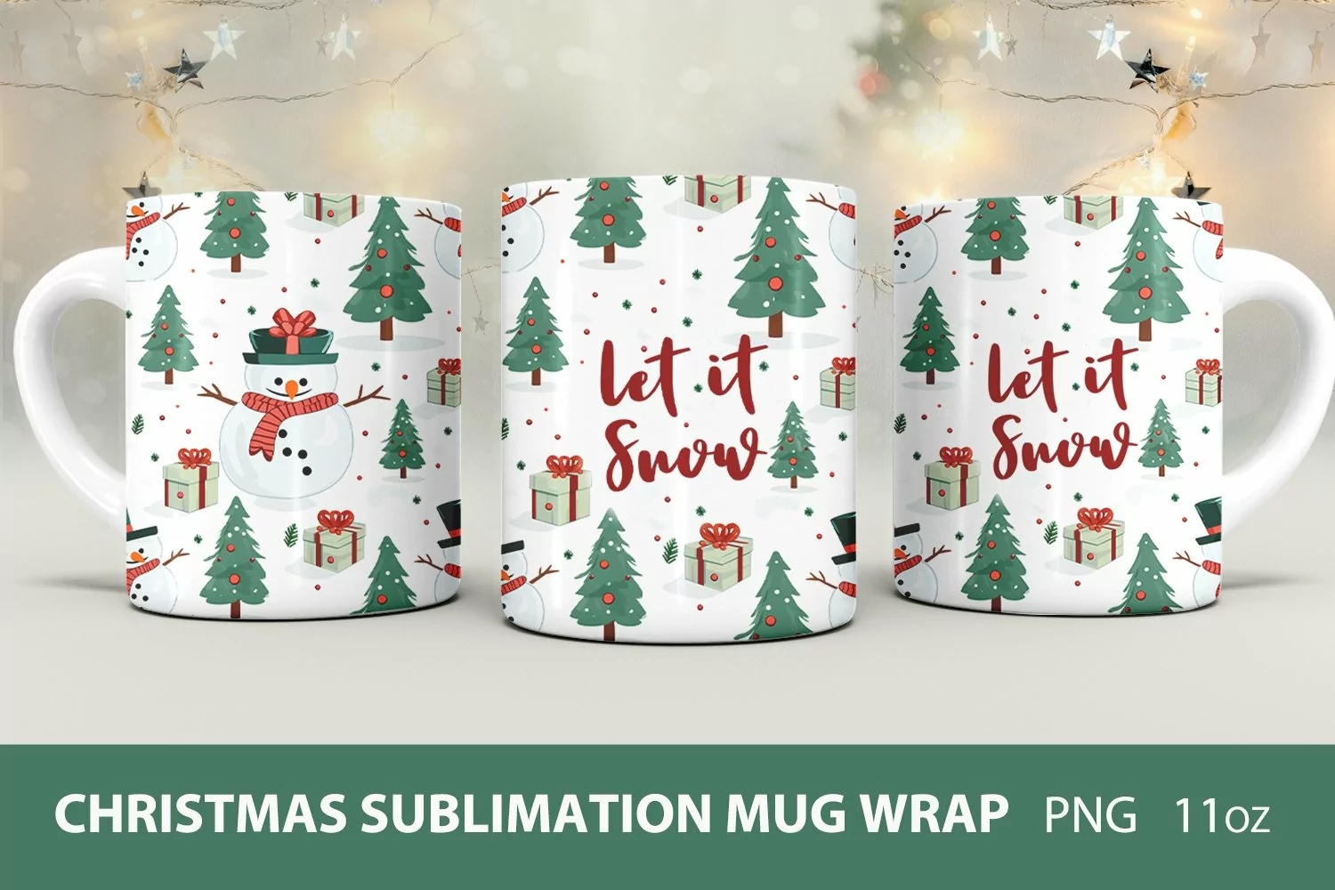 Christmas snowman and christmas tree sublimation mug wrap designs