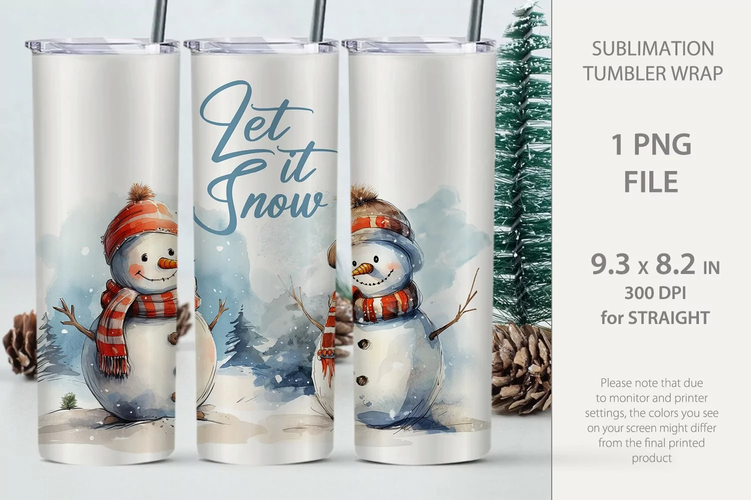 Christmas tumbler wrap, Snowman sublimation tumbler wrap example image 1