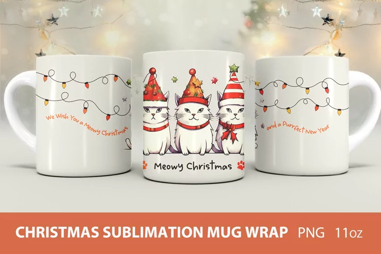 Christmas mug wrap with cat meowy christmas mug example image 1