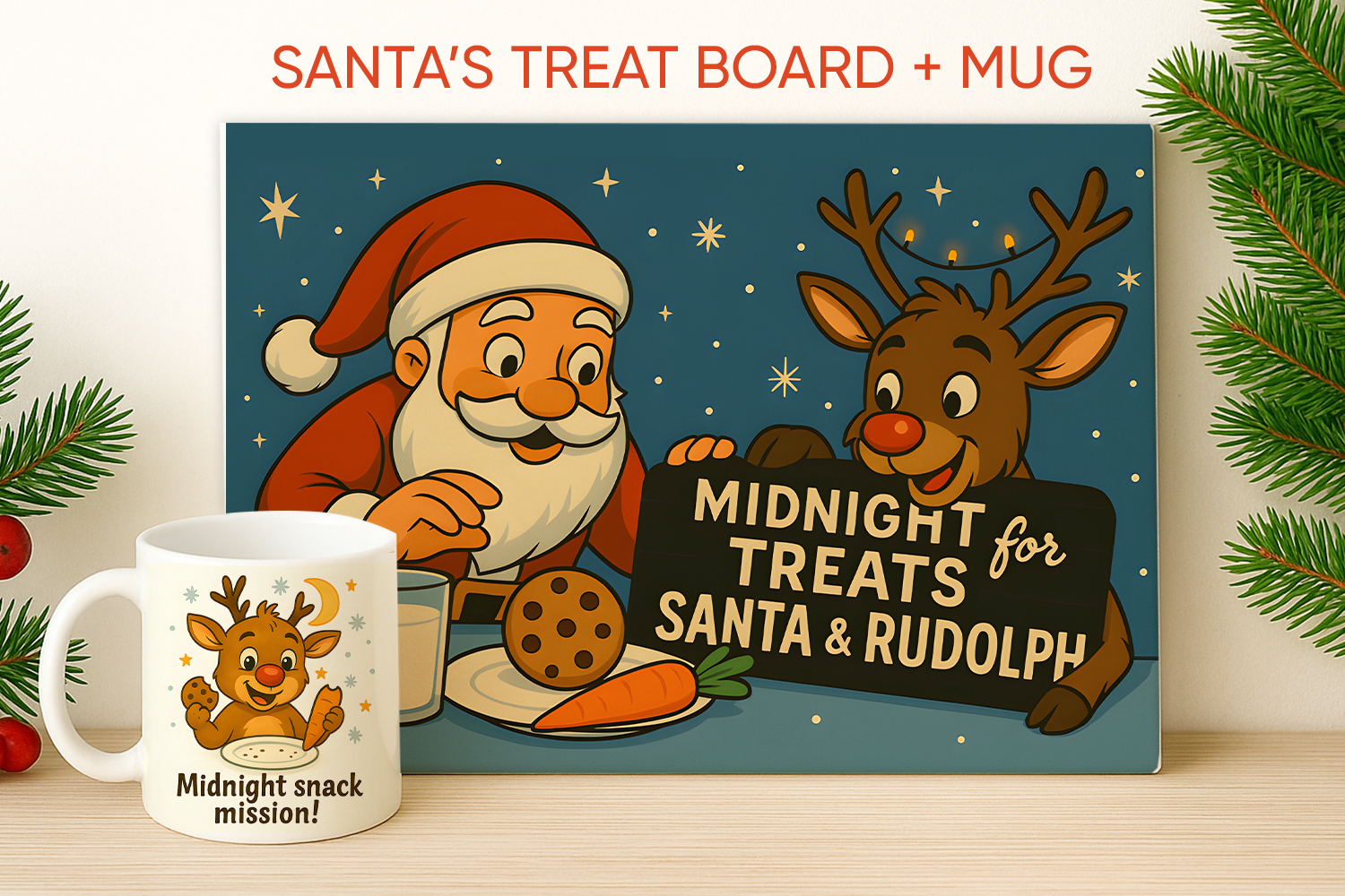 Similar Design Products to Santa Cookie Board & Christmas Mug, Santa treat board