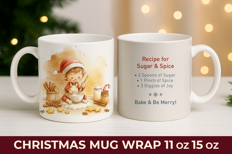 Add some fun to your Christmas mugs with this Elf mug wrap! Designed for 11 oz & 15 oz sublimation mugs, featuring a cute elf and festive recipe.