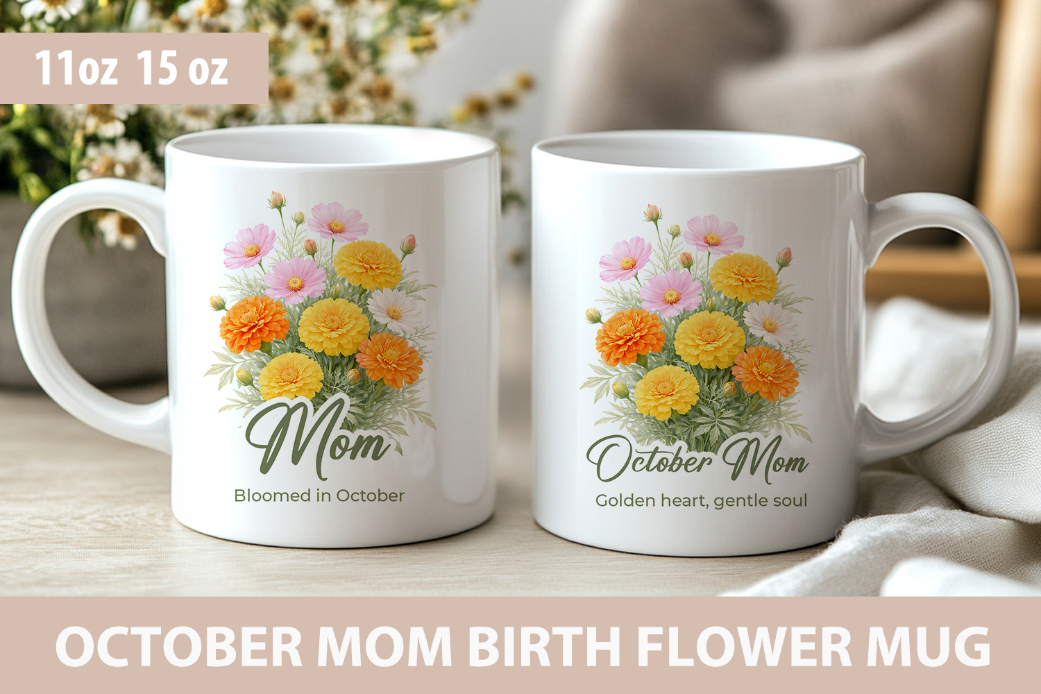 Sublimation Mug Wrap Mug Wrap Png Mothers Day Mug Wrap 11oz Mug Wrap 15oz Mug Wrap Mom Mug Wrap October Mug Wrap October Birth Flower Birth Flower Mug Wrap Marigold Birth Flower