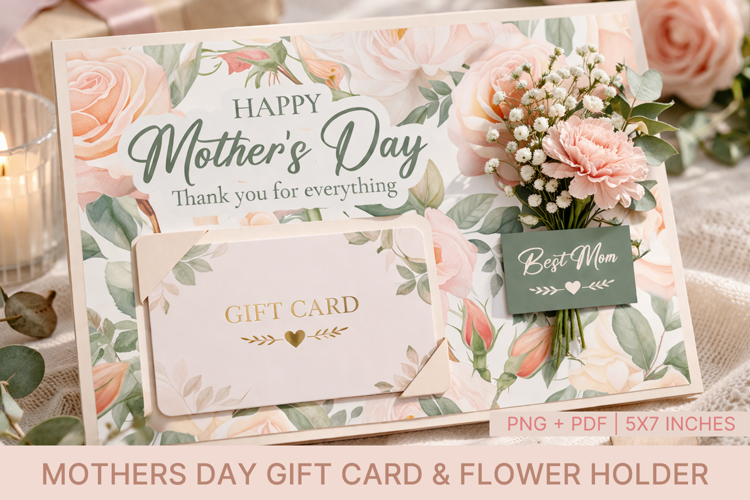 Similar Design Products to Printable Mothers Day Gift Card Holder With Bouquet Slot