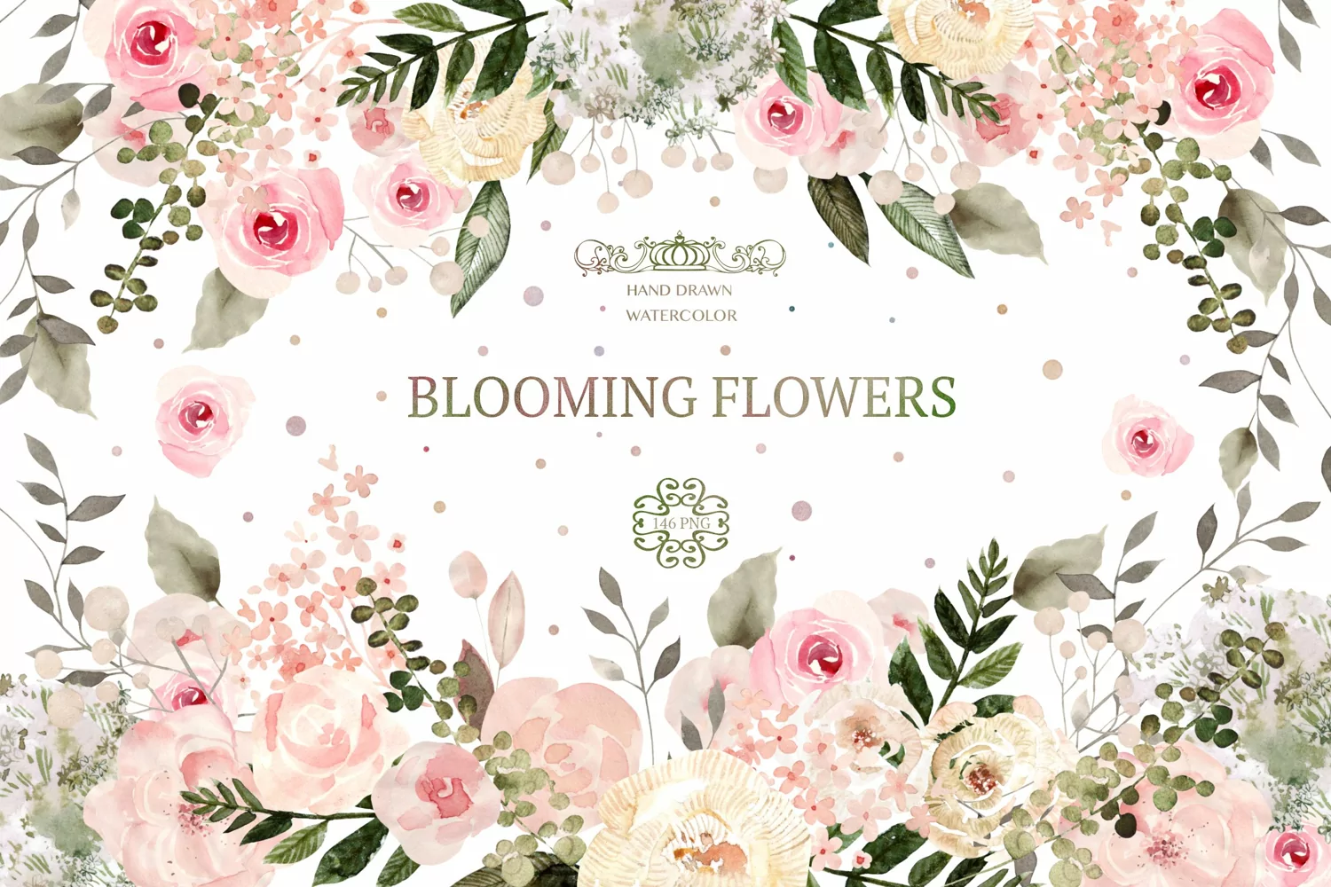 Wedding Watercolor Blooming Flowers Pattern Leaves Wreath Buds Bouquet Png