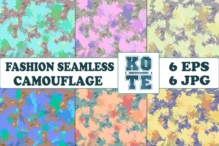 This pack will be available as 1 zip file which contains 6 EPS and 6 JPG images with seamless patterns - Fashion Camouflage in blue, green, yellow, brown, pink, red and violet colors. You can tile them to get whatever size you like, these patterns also can be used for fabrics, large prints or backgrounds.